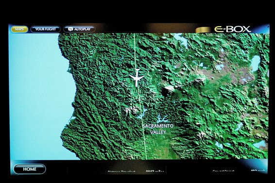We took off right on time and the pilot announced a 16-hour flight time to San Francisco. He did not mention the route but it turned out to be the normal northerly route via Moscow, then on to the North Pole before going south and hitting Vancouver and Seattle before reaching San Francisco.