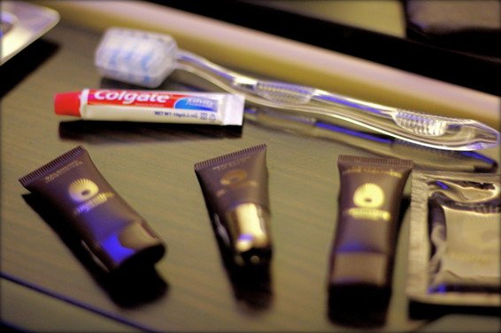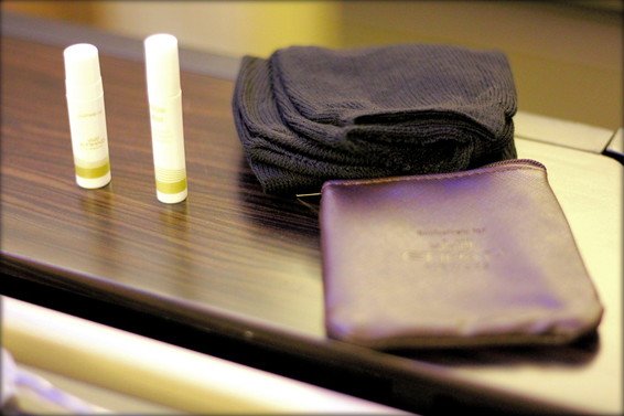 I put on my pajamas right away and found them to be good quality - easily good enough for the next 16 hours. The amenity kit was great too, with more quality items than I expected. I finally added a new eyeshade to my repertoire; I usually only use Cathay Pacific eyeshades since they are so nice and soft :)