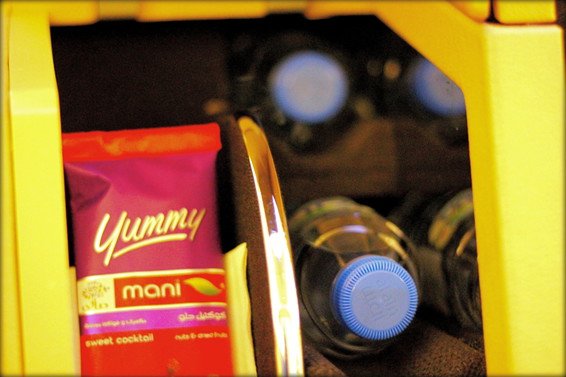 The suite features a little 'mini-bar' stocked with water and snacks (à la Emirates).