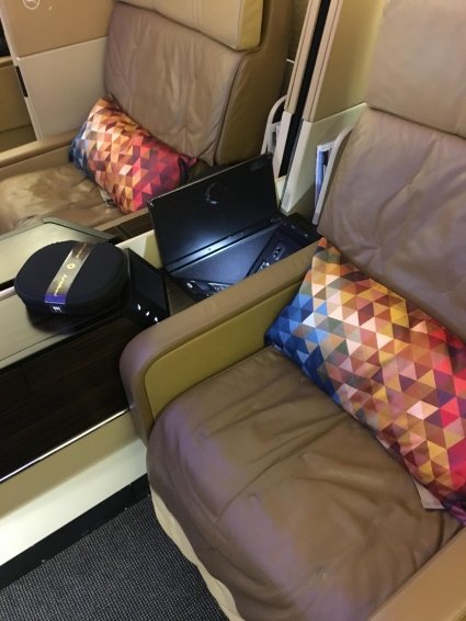 After reaching 10,000 feet the flight attendants offered to make the bed, which I greatly appreciated. The seat goes flat but is made up of so many moving pieces that it is not exactly a FLAT surface. It's no comparison with the Singapore Airlines 'mattress system'. I was concerned that it would create back problems for me again (as the business class seat had given me, but I was tired enough to fall asleep right away and not wake up for 10 hours.