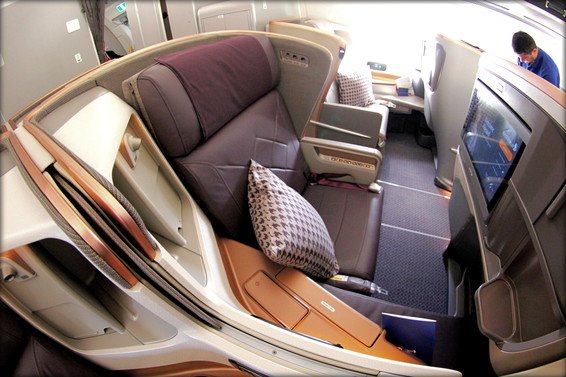 The seat resembles the Cathay Pacific mini-suites to an extent, but there are some drawbacks. You can't fully recline the seat into a bed without the help of a flight attendant; the flight attendants are eager to help so it isn't a big deal, but I prefer to be my 'own boss'. Plus the seat just has a small recline when not fully flat.
