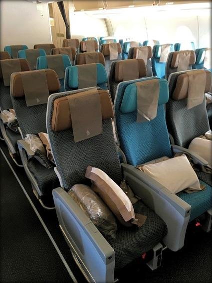 This A350 is a brand-new plane and it looked really shiny - including the seats. The seats are stacked with much less space than in prior Singapore Airlines Business Class versions, though.