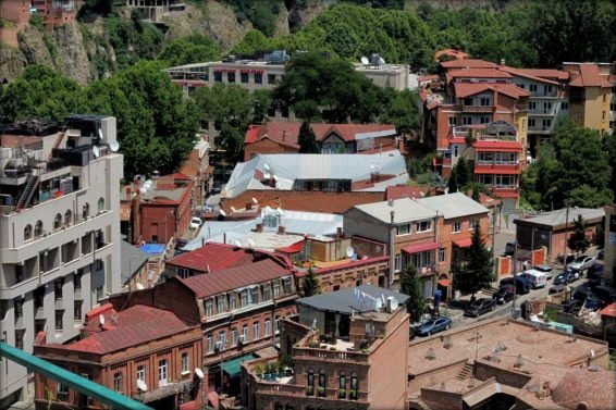 Tbilisi is blessed with a beautiful geography - a river valley that has cut into the green mountains. The small river banks give way to steep hills on both sides.