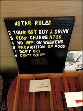 Woolloomooloo is a local mini-chain, inspired by Australian coffee shops. It is hipster, urban and spacious - something that is rare to find in Taipei. The coffee and food are excellent but the staff aren't exactly helpful, with a huge language barrier and lots of confusion. However, there is fast WiFi and the coffee shop even has a discount for remote workers who show up every day - awesome!