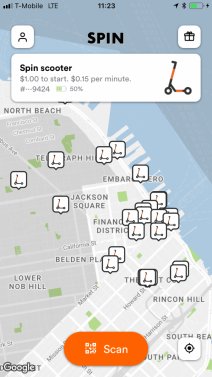 There are a lot of Spin scooters on the streets of San Francisco and you'll spot one quickly. However, many scooters that you see in real life and on the map can't be unlocked. You drop by/scan the code in the app and wait and wait and wait.