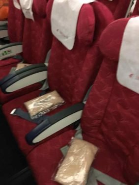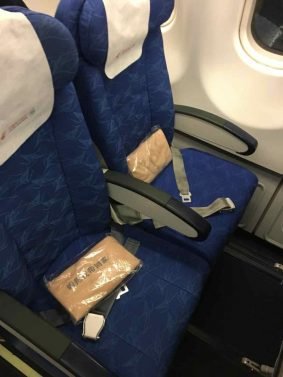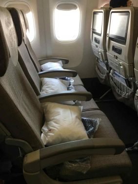My strategy paid off and to my shock and surprise, I scored a 'poor man's business class' on this almost full flight, with four seats in the middle.