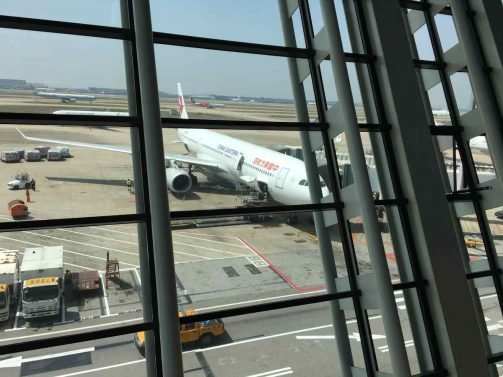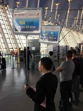 The check-in staff were happy to go along with my gamble to get a full row for my two flights. There were just two rows open with four middle seats on the first flight and a few more for the Shanghai - Los Angeles section. I grabbed an aisle seat on one of the rows and was hoping nobody else would check in and change seats...