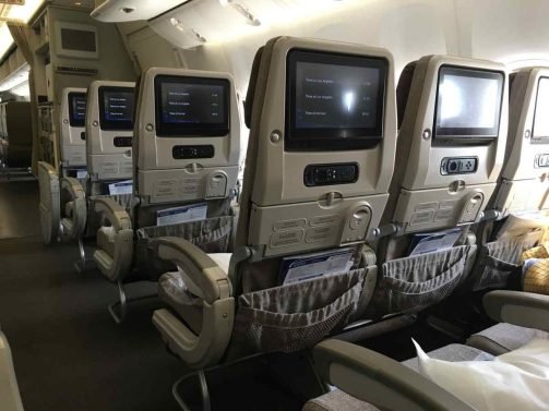 I wasn't sure my 'empty row' would be so empty on my flight to Los Angeles, so I checked with the gate agent. She was surprisingly friendly and showed me the seat map on her phone. While 'my row' had filled up, there was one further back that still showed four seats, which is where I would be now.