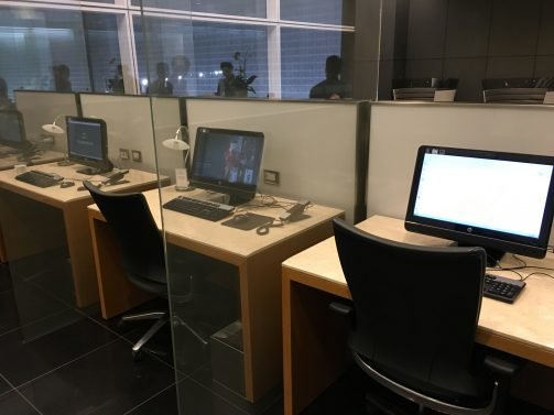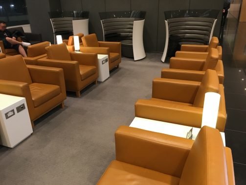There are some comfortable lounge chairs but there is no way to lie down (though few lounges have that).