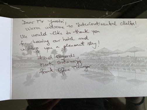 In sum, we felt that InterContinental Malta is a stunning property but management does not keep a tight enough control. It seemed to be r'uled by randomness' while I was staying. I'd be happy to try again one day though.