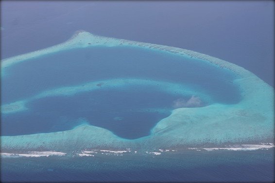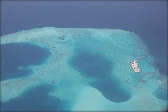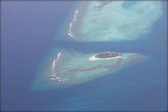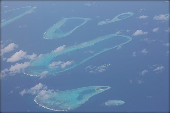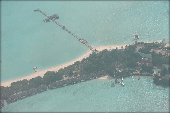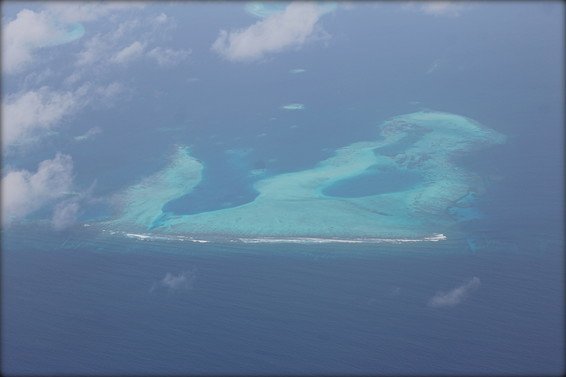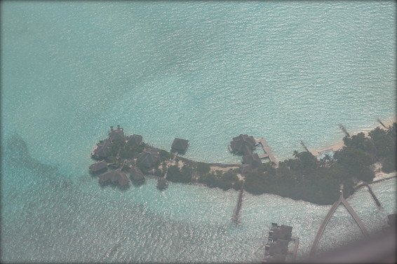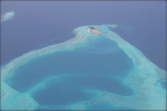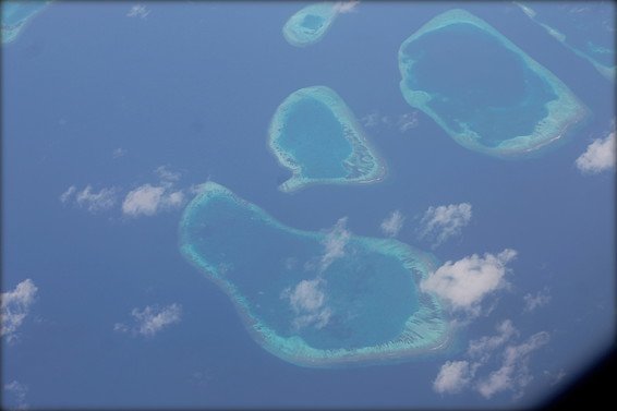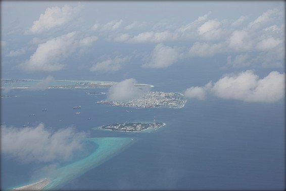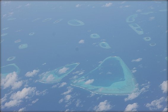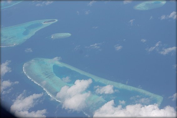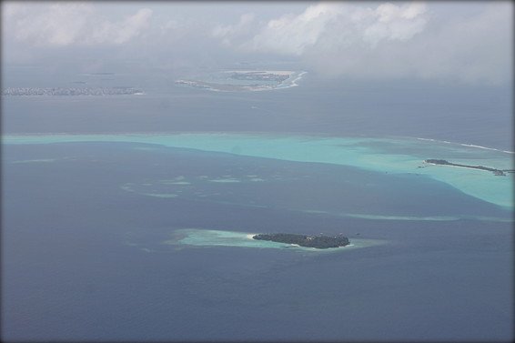 The best part of this flight was approaching the Maldives from above. The weather was clear and the islands under us as shiny as I have ever seen them.