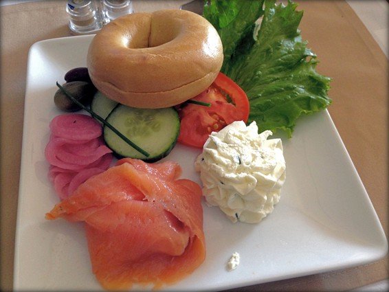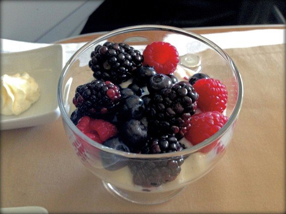 The yogurt parfait and the fruit were excellent. I also got my much revered espresso (something United just took off the menu in their 787s recently). The entree, a salmon bagel, was fantastic in taste and probably the best food I ever had on any US airline.