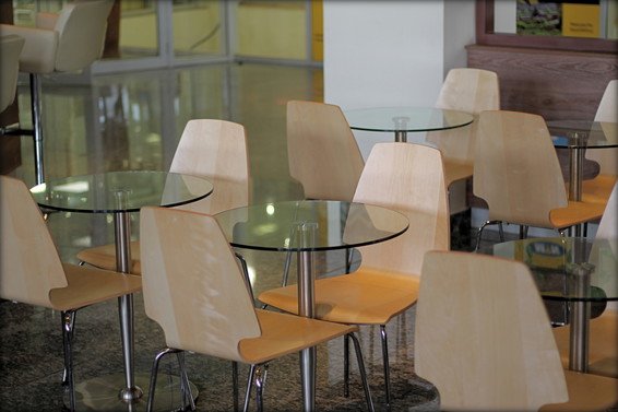 The lounge comes in dark colors and and very modern and tasteful furniture. There is a self service bar for drinks and some snacks (think basic carbs).