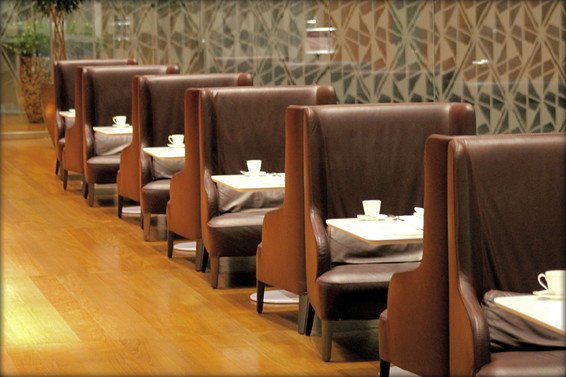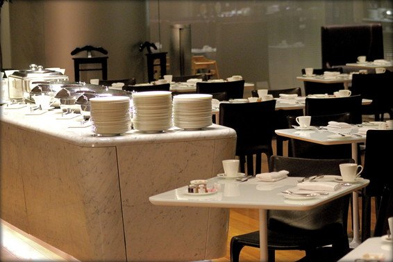 Now you can guess where the crowds throng in this lounge - no it is not the coffee bar or the Business Center. Expect every seat to be taken for breakfast, lunch and dinner here.