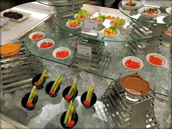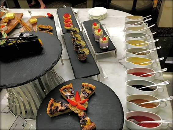 My Marriott Gold status (from the Ritz Carlton credit card) allowed me access to the Executive Lounge on the 21st floor. The evening service was quite good with lots of appetizers and decent white and red wine selection. The only problem was that there were so few items. 3 slice of baguette, 2 slices of cheese etc. It was absurd. There were about 30 people in the lounge during the whole service hour and the buffet was empty most of the time. It would get refilled eventually but 30 minutes would have passed in between.
