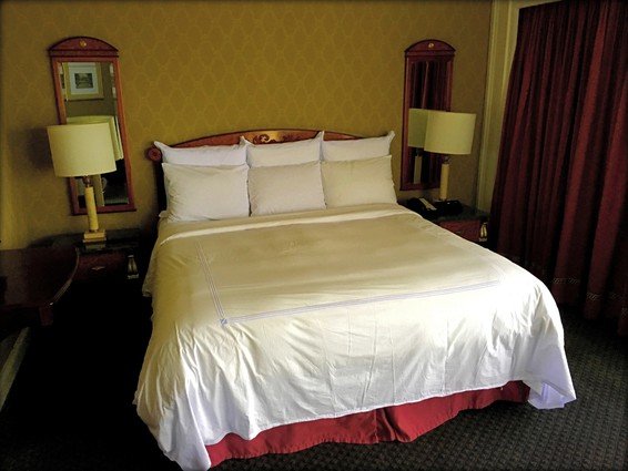 The room was huge (I was upgraded to a Studio) but about to fall apart. Everything was creaky (but working) with a powerful AC that cooled it down to 50 degrees if you wanted. The bed was huge and very comfortable.
