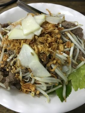 Bun Bo Nam Bo Hang Dieu is another local 'street food' experience in Hanoi that serves cold noodle salad with beef and dried onions. It's simple, yummy and cheap. There is no atmosphere and the service is nonexistent. However it is cheap and fast!