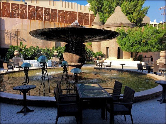 I did not think much of this place at first and rather wanted to explore the area around it. That was a mistake; this old, stately building expresses much of the warmth and hospitality of the Gulf countries. The colors, architecture and the sheer quiet make it a lovely place. The restaurant has a fantastic garden, but keep in mind that prices are sky-high here.