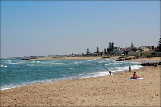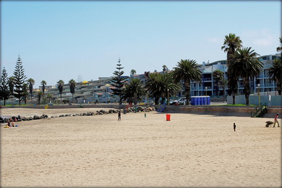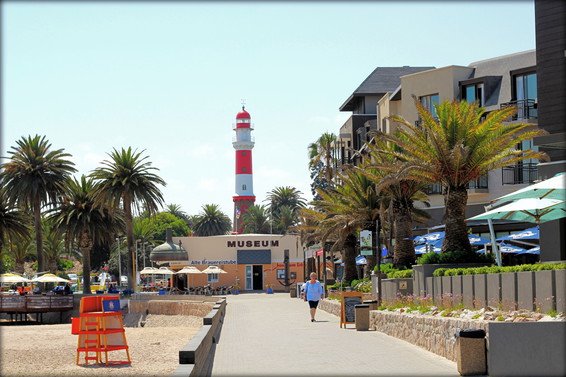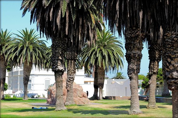 Swakopmund is dominated by the Strand, which is a modern hotel right at the beach. The area around it is mildly touristy, but the palm-lined streets look superbly pretty on a clear day.