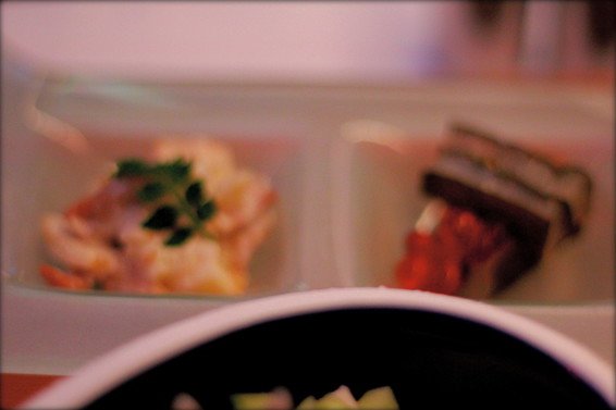 This flight to Hong Kong took just 3 hours and the flight attendants really worked on getting the food out quickly. I had the Thai tiger prawns (which had I booked through the 'Book the Cook' selection beforehand) and thought it was excellent. I also liked the dessert, but the appetizer much less so.