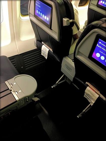 The leather seat is like a domestic first class one that we are used to. It seemed a little wider and more plush than what I expected (but that might have just been me) but the seat pitch is rather short at 37 inches.