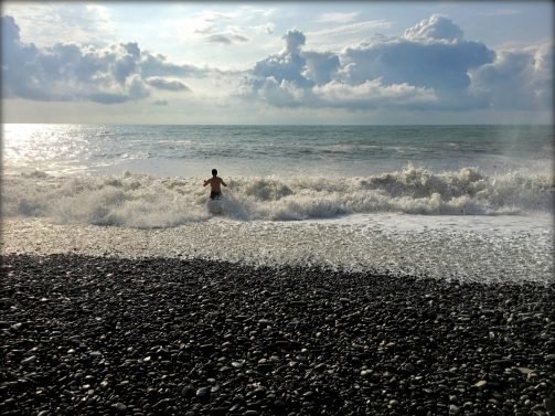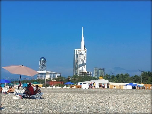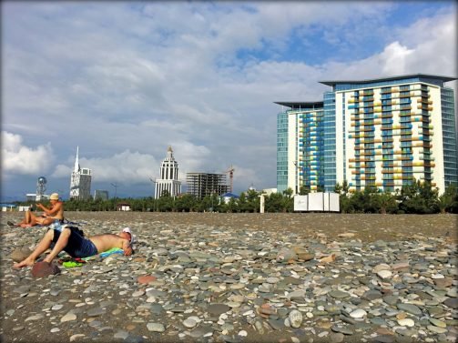 From almost anywhere in Batumi you can just go straight to the beach. It's a pebble beach but it is still great fun to enjoy the waves in the rather warm and just slightly salty waters of the Black Sea.