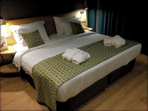 I thought the sleeping quality was excellent, with the powerful AC, our quiet room (this one faced a back alley) and the new mattresses.