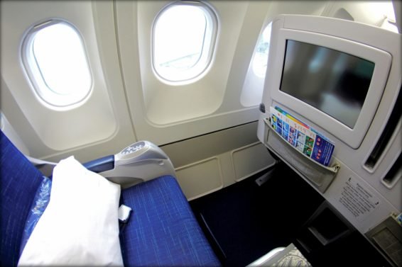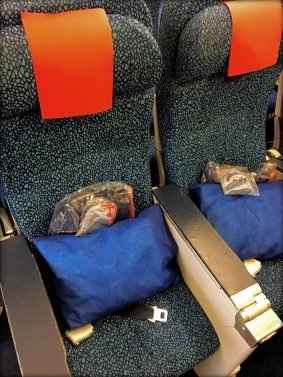 The Aircalin Business Class cabin is much like the old (and still flying) Air France Business Class. It will say lie-flat in some reports but it is angled lie-flat. The seats fold down somewhat and are nice and comfortable.
