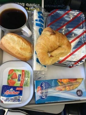 Breakfast was served about one hour into the flight and the quality was excellent, with great coffee, a fresh croissant, an edible omelet (which I did not try myself, though) and fresh bread rolls.