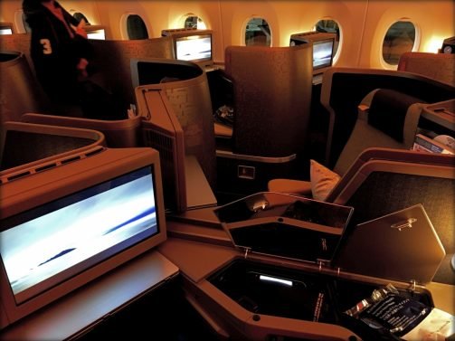 The seat comes prepared with all the amenity kits, slippers, headphones and water for the long flight. There isn't any work left for flight attendants and they can focus on newspapers (which I found a bit old-fashioned) and pre-takeoff drinks.