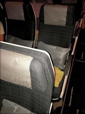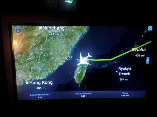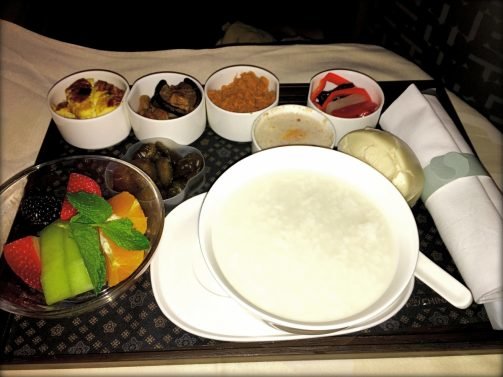 Everyone else seemed eager to eat and the full meal service ran for three hours, with most passengers participating. The Zodiac seat goes fully flat and I can stretch out almost completely. What was surprising is that I had trouble turning; it usually works but this seat was just a few inches smaller, so it would wake me up from time to time. I still slept an almost solid 10 hours and woke up over Southern Japan. I asked the flight attendant for my meals and she offered to serve breakfast first and then dinner right after.