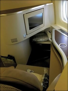 Shortly after dinner, I stretched out on the seat, which felt a bit 'less flat' than what I remember from my many Cathay Pacific adventures. The duvet given is thick and easily as good as any I ever had but it is short - not made for anyone over 6 feet.