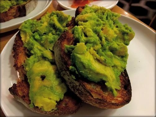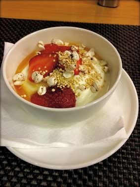 I ordered several items from the breakfast menu - bircher muesli, yogurt, pancakes and a custom-made smashed avocado on sourdough toast.