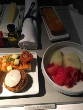 There was a small dinner service that I had just missed prior and I was served this, plus the flight attendant found some extra bread rolls and cheese desserts for me.