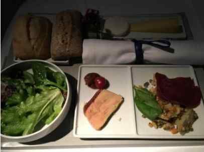 I used the flight attendant call button and the friendly but stern flight attendant came by quickly. I was hoping to eat my choice of entrées from the lunch menu but that's where the conversation ended. No food would be available from lunch since it was now spoiled! Air France warms up all food irrespective of passenger wishes and leaves none refrigerated. Despite the cabin being less than half full, no meals are left - oh well.