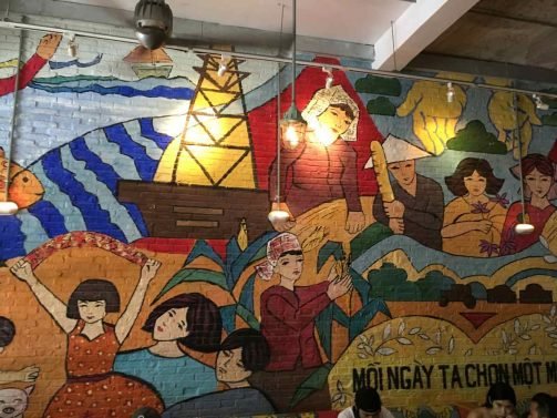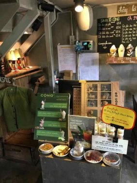There are far fewer Cộng Cà Phê outlets here compared to Hanoi and they are much smaller here. Maybe it is because its Viet Cong theme goes down badly with the losers of the Vietnam War. The coconut coffee drink (more a dessert than a coffee) is still very delicious!