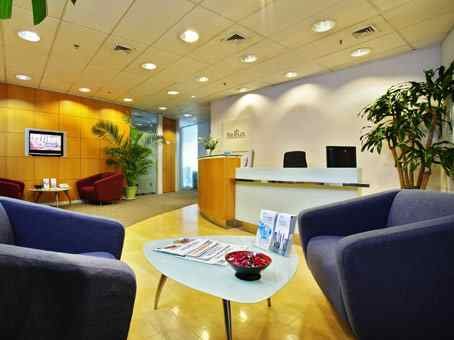 Regus has a number of locations in town and some of them have a perfect location; this is likely the most efficient option.