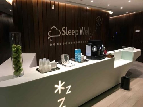 The Wellcome Lounge attendant just needed my Priority Pass number - no scan, signature or boarding pass needed. The lounge itself has a cool, modern design and features sleeping rooms as well. These cost $6 per hour, which seemed like a fair price to me.