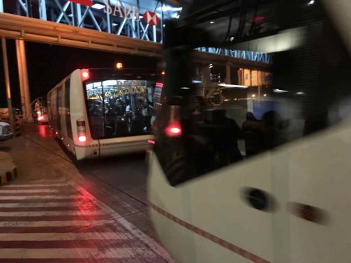 About 150 passengers (three buses) made their way out and when I boarded (almost last) I was stunned to see that economy class was almost 100% full and even business was 70% full.