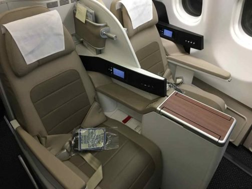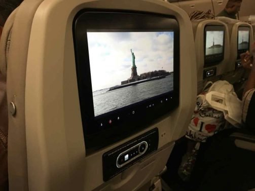 Economy class also looked very modern, with huge seatback screens and remotes. There were power outlets (USB and AC) for every seat in economy and there was at least 31 inches of seat pitch.