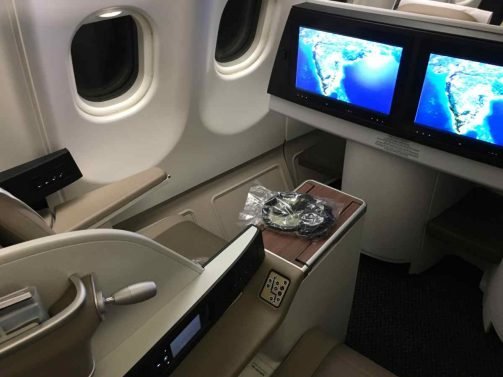 This A330 was light years ahead of the configuration I had flown in Saudi Economy just a few hours earlier. Business class features the same flat-bed installation that Qatar Airways uses on its A330 (as I flew with Qatar Business Class from Berlin to Doha).