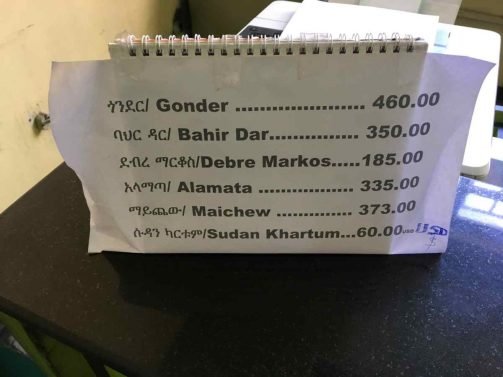 About half a dozen bus companies had the trip on offer for the following day and none seem to be sold out. Prices seemed to be the same, at ETB 350 for the one-way and the departure time was generally set at 5AM. Nobody had an answer when I asked if one company was better than the others.