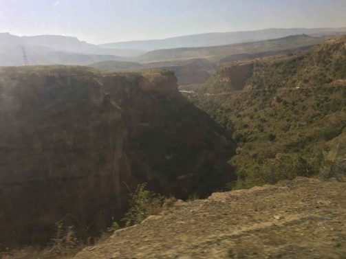 For the next two hours, we crossed the Ethiopian version of the Grand Canyon - a massive 6,000-foot sheer drop that we would go down and straight up. The road was paved but it was far from even and the bus shook like a smoothie maker.