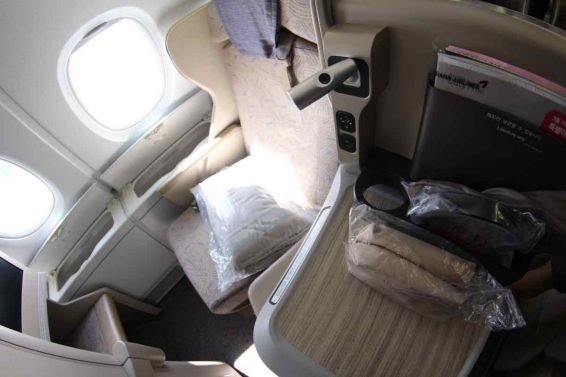 The Asiana Smartium seat is the same as on the Asiana 777 Business Class. It's spacious and functional.