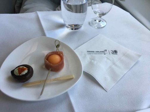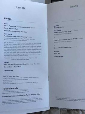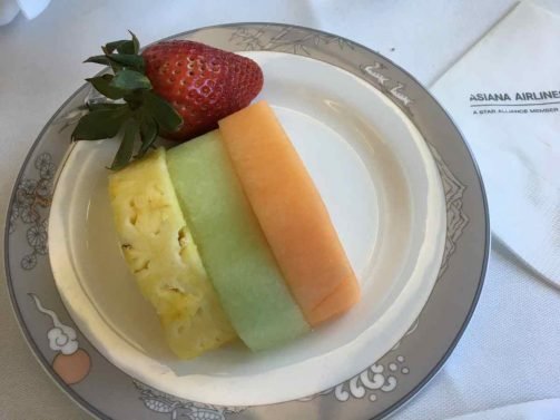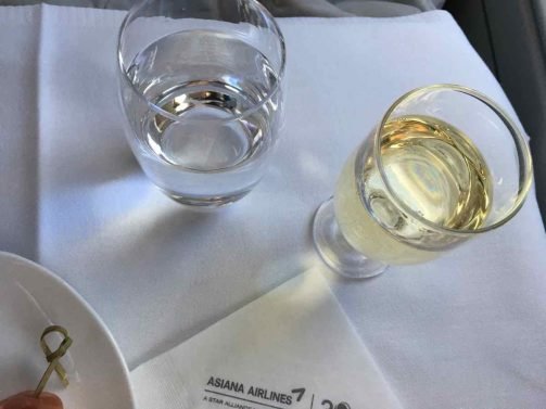 As with many Asiana flights, the flight attendants were extremely friendly and attentive. There seemed to be no difference in attitude toward first and business class passengers. They came by early to collect the lunch choices (I selected Korean) but service started rather slowly about two hours later.