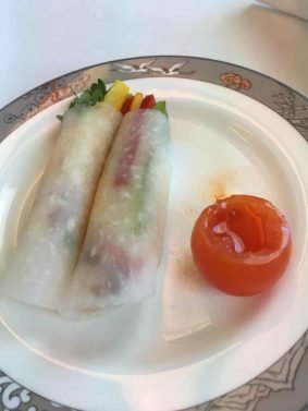 I was still hungry so I actually switched back and forth to the western menu with appetizers and dessert. The flight attendants usually waited until they ran by all the other passengers once with the cart but always had a dish left for me.
