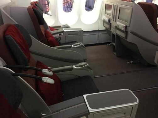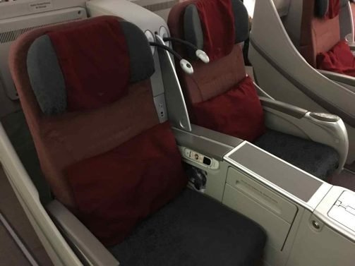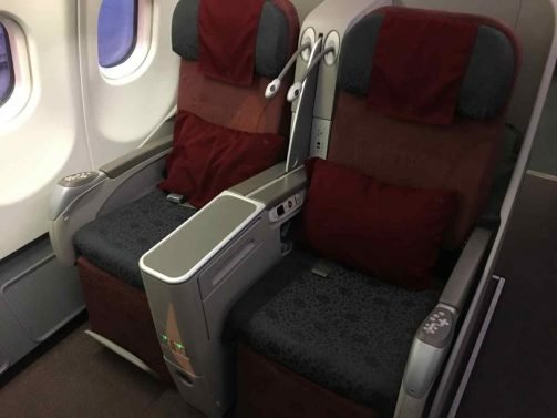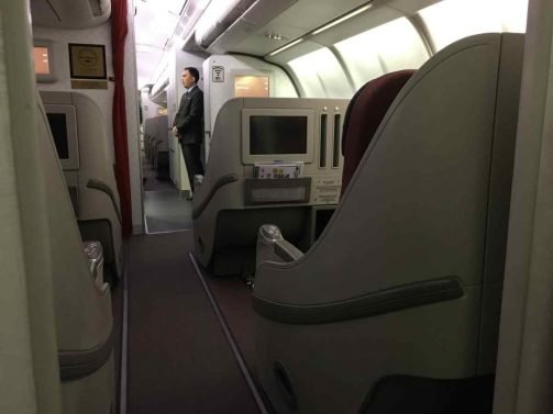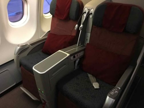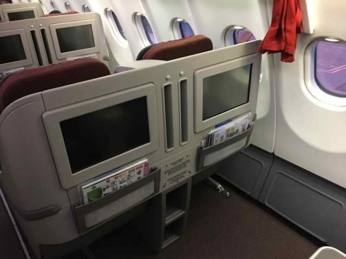 I flew on Garuda's A330 in their new business class last August from Jakarta to Denpasar in Bali. This time, I took the same flight booked in economy for just $130 one-way but got into the very first economy aisle emergency exit row - basically sitting in the aisle of business class (this is a very off configuration).