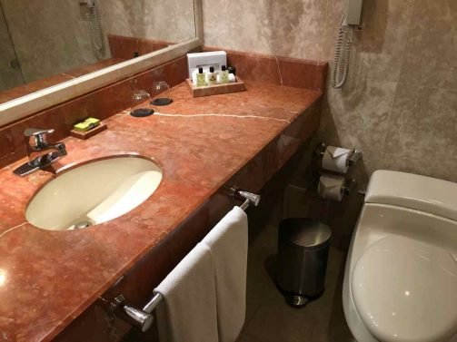 The bathroom was small but renovated and had the typical (good) InterContinental amenity pack.
