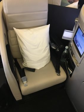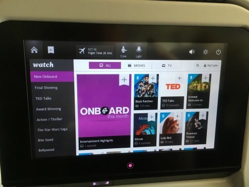 While 'lie-flat', the downside of the Air New Zealand seat is that it requires a flight attendant to make your bed and it requires extra bedding. We did not have that loaded and you can recline only about 30 degrees by yourself. This is quite a limitation if you plan to sleep because you are basically still upright. You are paying for a lie-flat seat but you can't get to it - you are getting just a recliner seat.