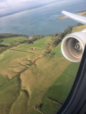 We were in for some major shaking as we landed into a storm moving in on Auckland. Some of the bumps were pretty miserable, with the many older (and very young) members of the audience shaken.